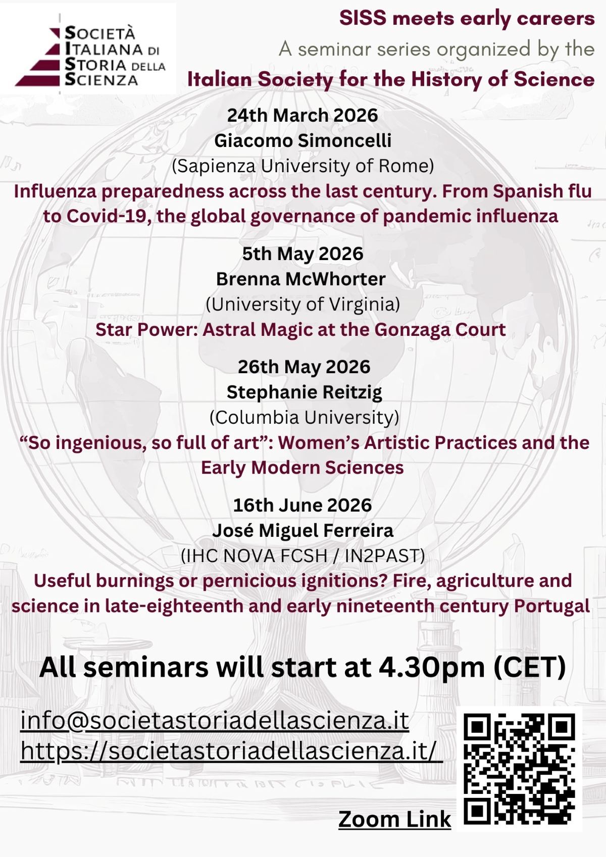 The Italian Society for the History of Science / Società Italiana di Storia della Scienza (SISS) is pleased to announce a Seminar Series: